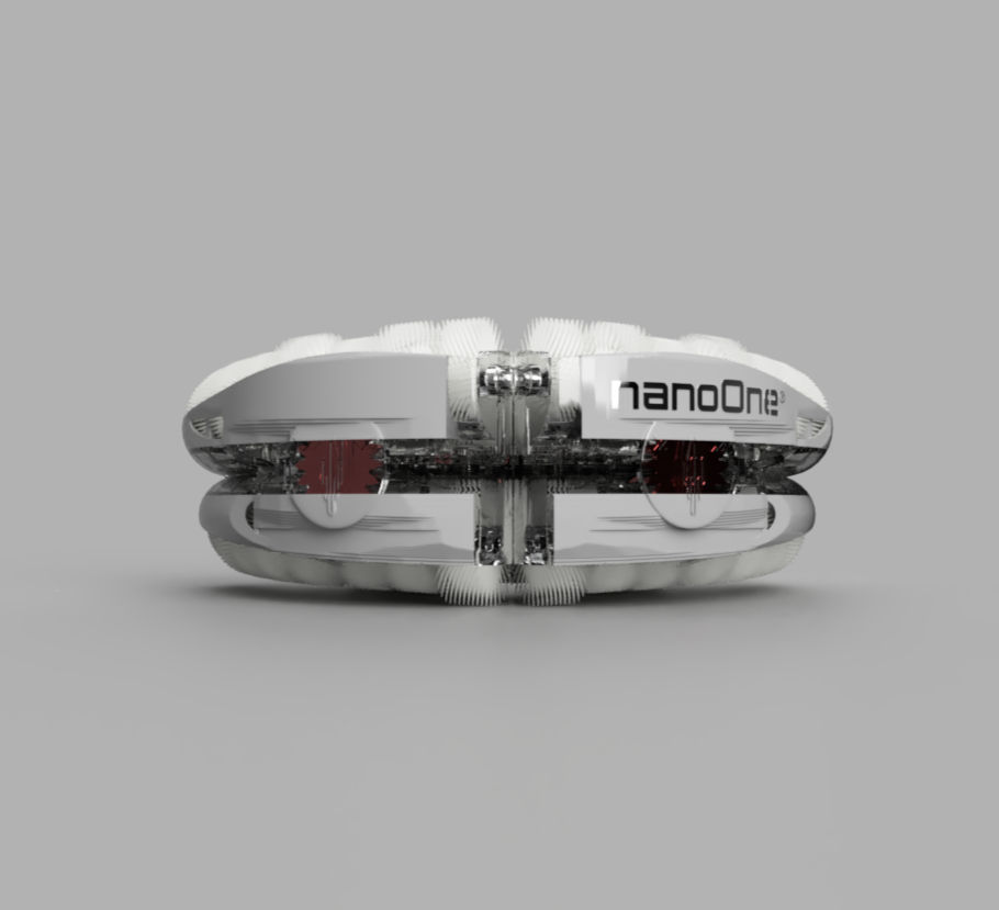 After each session, nanoOne self-sterilizes with UV-A and UV-B and recharges on its wireless Qi dock.